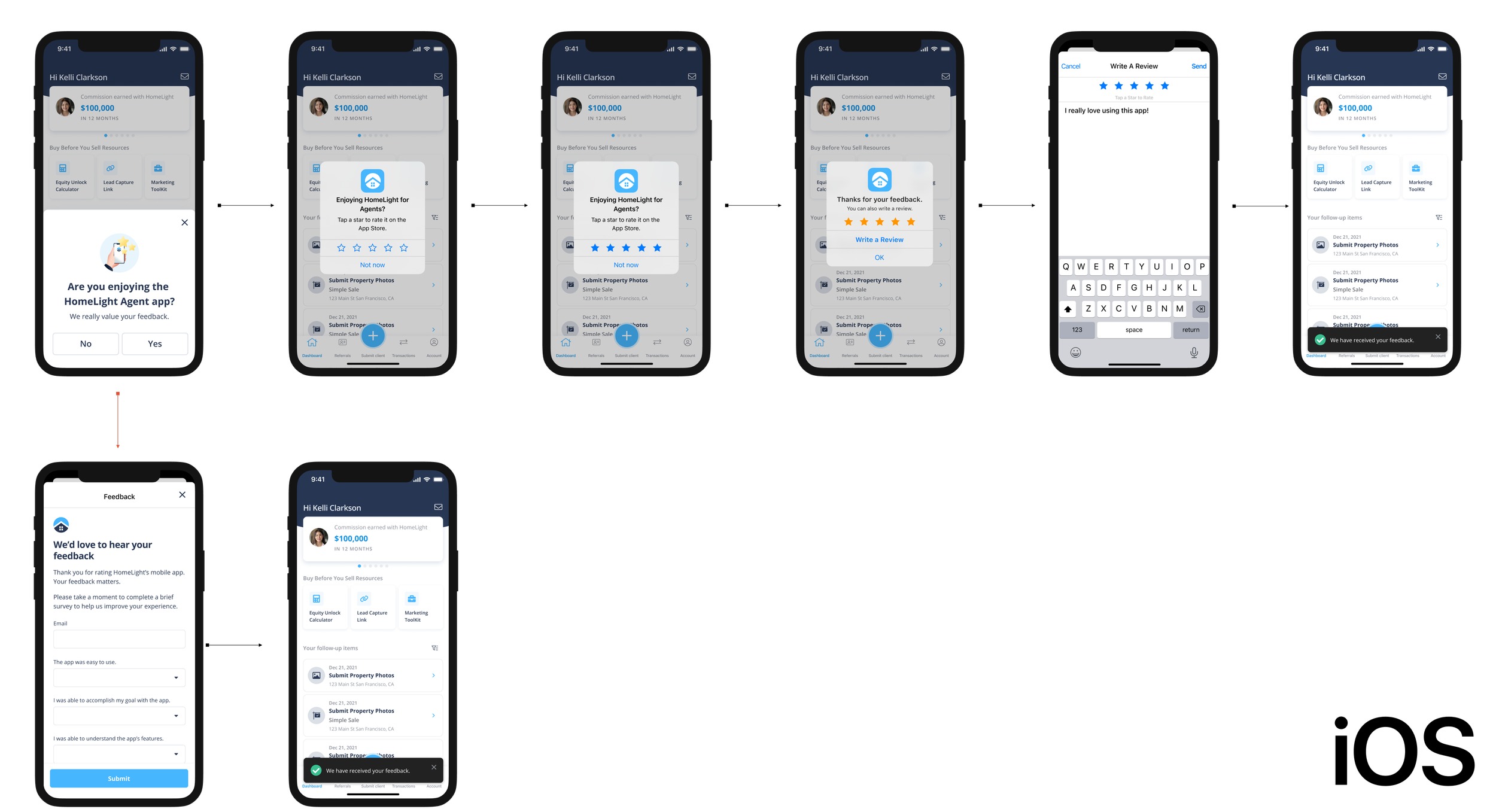 This project was extremely successful and very fun to manage and design from conception to production. Not only did we see a significant increase in reviews, but we are also receiving valuable user feedback that will inform future app updates. I’m collaborating closely with our Support team to ensure that agent feedback is addressed and to maintain our strong relationship with agents.
